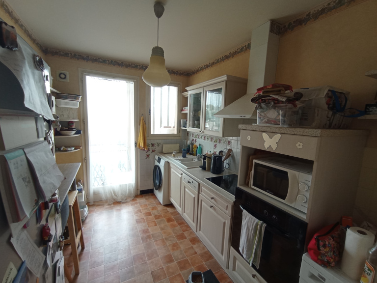 Brive quartier Brune : Un appartement T3 d'une superficie de 67 m2, situé au 5ème étage d'une résidence avec ascenseur. Il comprend une entrée, cuisine indépendante avec petit balcon, un séjour avec balcon, deux chambres, salle de bains, toilettes indépendantes. Double vitrage. Chauffage collectif gaz. Garage. Charges annuelles de copropriété 2924 euros cauffage et eau compris. Taxe foncière 1206 euros. Rafraichissement à prévoir.